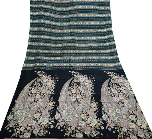 Indian Vintage Sari Black & Beige Pure Silk Printed Sarees Craft Fabric 6yd Sewing Dress Making Soft Paisley Quilting Upcycle Crafting
