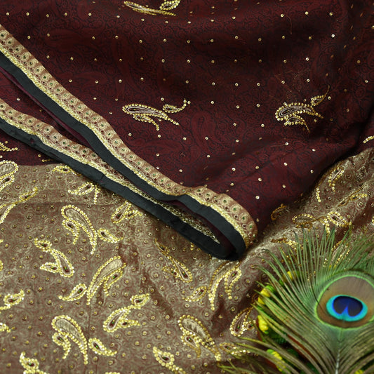Indian Vintage Sari Black & maroon Hand Embroidered Saree Pure Organza Silk Craft Fabric 5Yd Ethnic Dress Making Crafting Quilting Zardozi