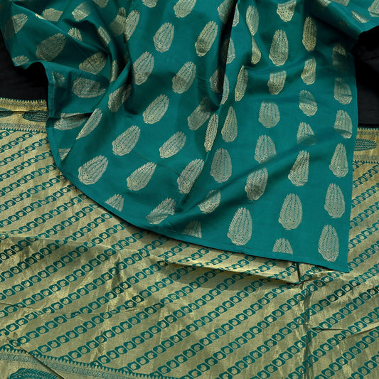 Indian Vintage Sari Black & Green Pure Silk Hand Woven Sarees Craft Fabric 5Yd Ethnic Dress Making Crafting Upcycle Quilting Zari Border