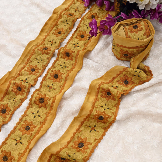 Indian Vintage Sari Border Hand Embroidered Indian Craft Trim Lace Sewing Sari Ribbon Crepe