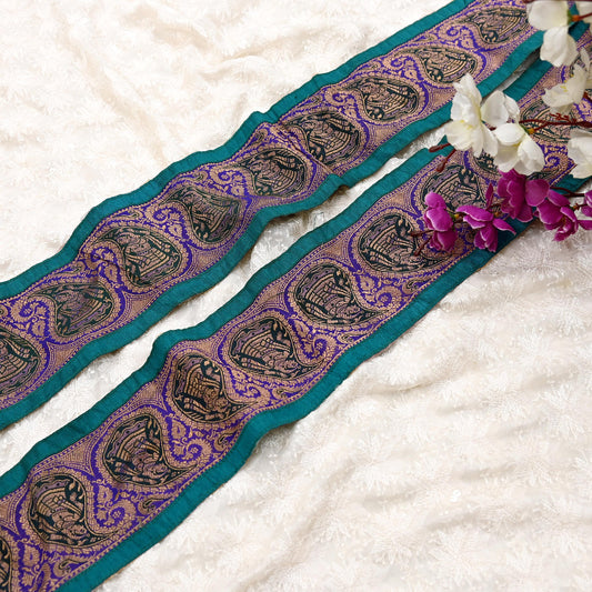 Indian Vintage Sari Border Silk Green Woven Baluchari Indian Craft Trim Lace Ribbon Recycled Indian Sari Border Home Decor Gift Wrapping