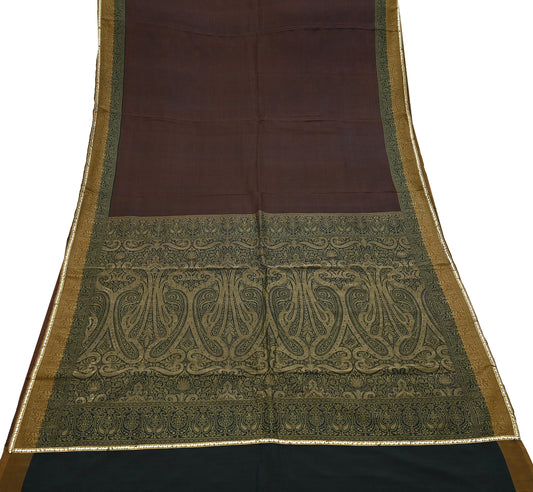 Indian Vintage Sari Brown & Green 100% Pure Silk Printed Sarees Craft Fabric 6yd Sewing Dress Making Soft Wrap Crafting Quilting