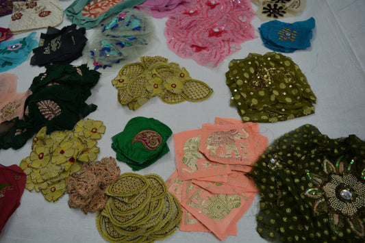 Fabric Appliques Sari Silk Applique Vintage Embroidered Snippets Remnants Craft Journals India Rare Sewing & Needlecraft Patches Sewing