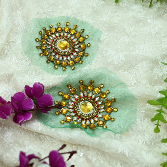 Indian Vintage Yellow Chanderi Appliques Set of 2 | Hand-Embroidered Floral Patches with Zardozi,Dabka, Zari,for Craft, Journals