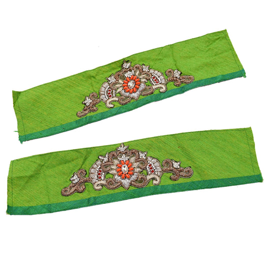 Indian Vintage Green Cotton Appliques/Patches Set of 2 | Hand-Embroidered Floral Patches with Zardozi, Dabka, for Craft, Journals