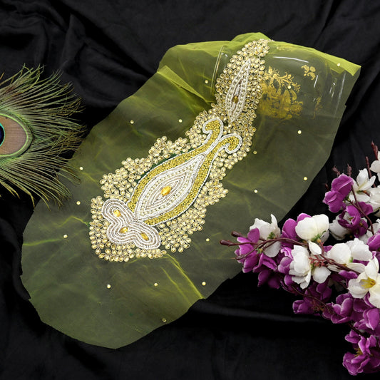 Indian Vintage Hand-Embroidered Neon Green Net Appliques Set of 1 Patches with Zardozi,Dabka, Zari,for Craft, Journals