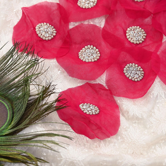Indian Vintage Magenta Pure Chiffon Silk Appliques Set of 8 | Hand-Embroidered bandhani Floral Patches Zardozi, for Craft, Journals