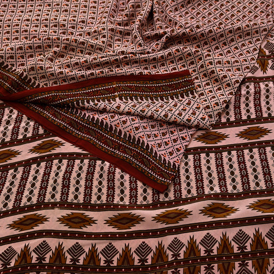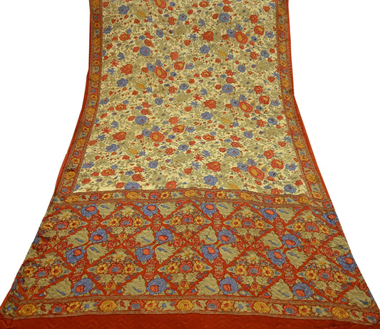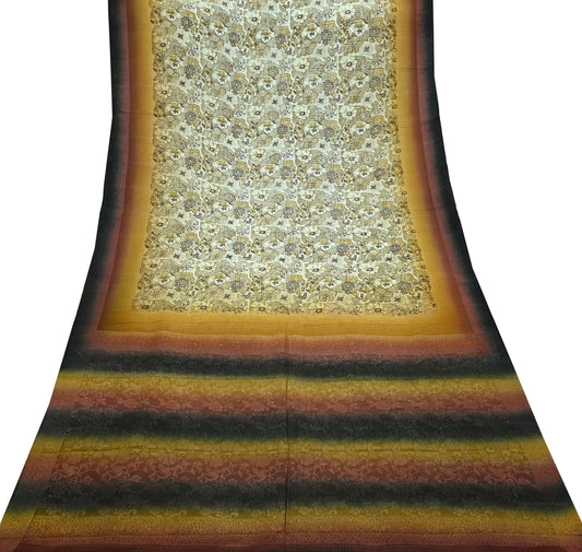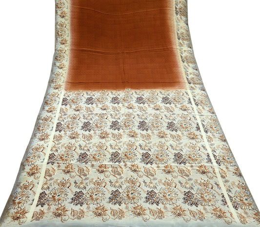 Indian Vintage Rusty & Ivory Saree Pure Crepe Silk Printed Sari 5yd Sewing Floral Soft Craft Fabric Wrap Dress Making Crafting Quilting