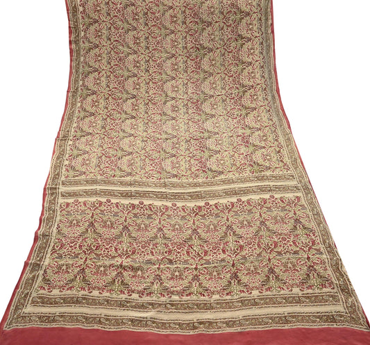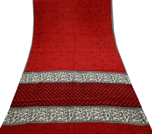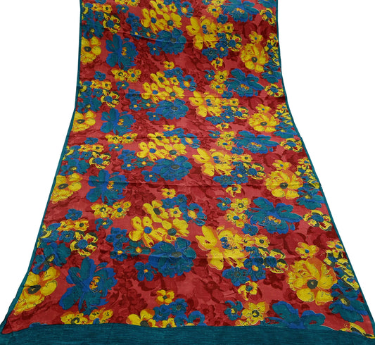 Indian Vintage Red Saree Pure Crepe Silk Printed Sari Craft Fabric 5yd Sewing Floral Soft Craft Fabric Wrap Crafting Quilting Upcycle