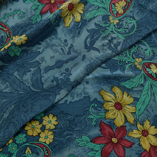 Indian Vintage Multi Pure Crepe Silk Saree Floral Print 5 Yards Soft Sewing Fabric for Dressmaking, Quilting, Crafting & Upcycling