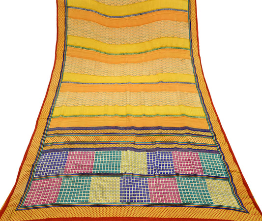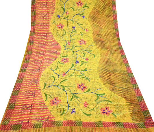 Indian Vintage Saree Yellow Pure Crepe Silk Printed Sari Fabric 5yd Sewing Floral Soft Craft Fabric Wrap Dress making Quilting Upcycle