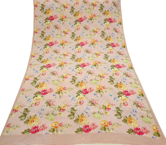 Indian Vintage Pink & beige Pure Crepe Silk Saree Floral Print 5 Yards Soft Sewing Fabric for Dressmaking, Quilting, Crafting Upcycling