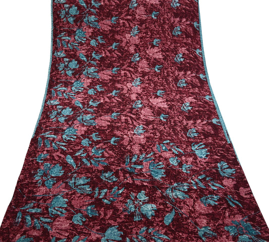 Indian Vintage Sari Maroon Pure Crepe Silk Printed Saree 5yard Sewing Floral Soft Craft Fabric Ethnic Wrap