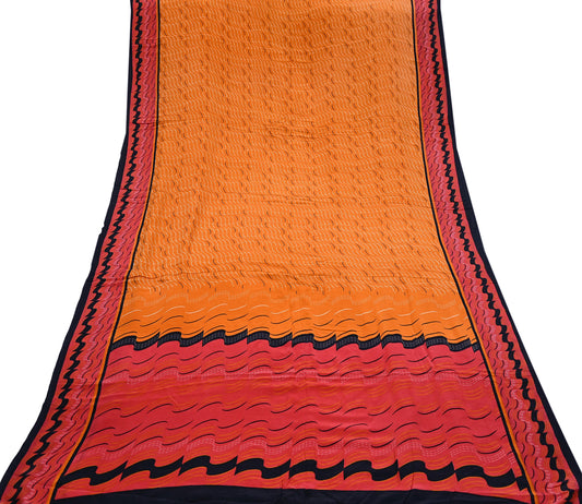 Indian Vintage Sari Multi & Saffron Pure Crepe Silk Printed Saree 6yard Sewing Floral Craft Fabric Wrap Dress Making Crafting Quilting