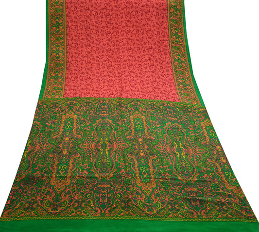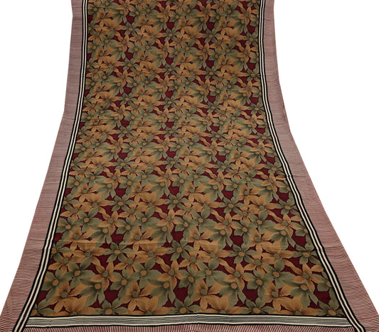 Indian Vintage Sari Green & Maroon Pure Crepe Silk Printed Sarees 6yd Sewing Soft Craft Fabric Wrap Upcycle Quilting Crafting Dress making