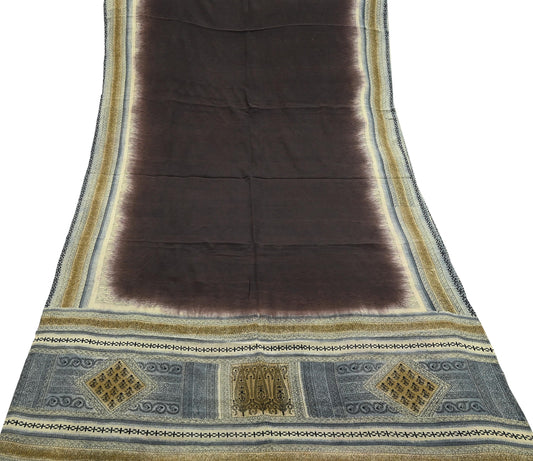 Indian Vintage Sari Brown Pure Crepe Silk Printed Saree 5yd Sewing Floral Soft Craft Fabric Wrap Dress Making For Crafting Quilting Upcycle