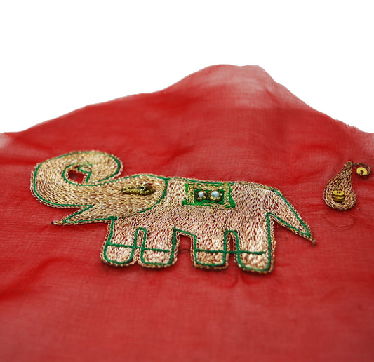 Vintage 3 Pcs Appliques Red Sari Silk Applique VERY OLD ANTIQUE Vintage Hand Embroidered Snippets Remnants Craft Journals India Rare