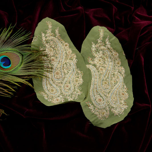 Indian Vintage 2 Pcs Rare Appliques Green Pure Crepe silk Applique VERY OLD ANTIQUE Vintage Embroidered Snippets Remnants Craft Journals