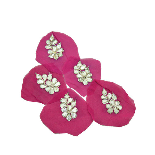 Indian Vintage 5 Pcs Rare Appliques Pink Georgette Applique VERY OLD ANTIQUE Vintage Embroidered Snippets Remnants Craft Journals