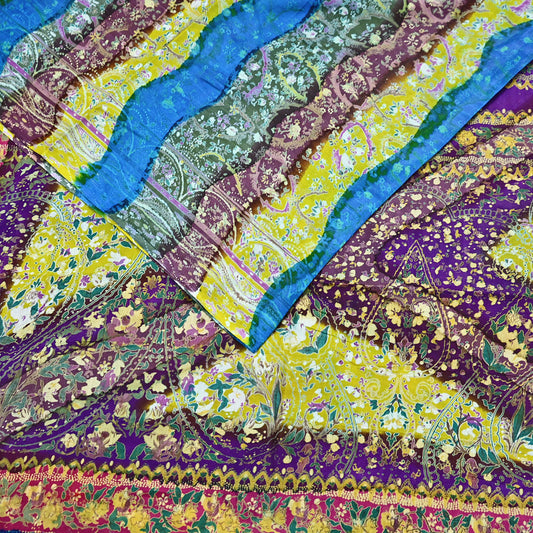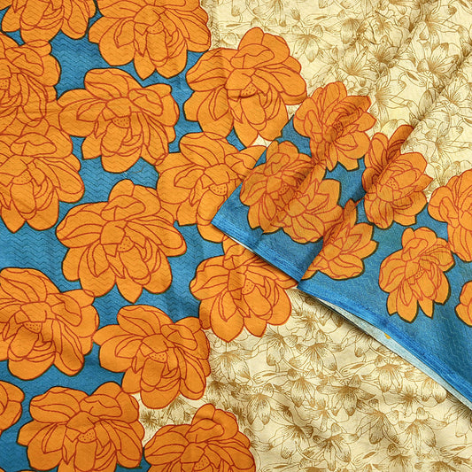 Indian Vintage Saree 100% Pure Georgette Silk Printed Sari Sewing 5yd Craft Soft Dress Designing for Crafting Floral Quilting Upcycle