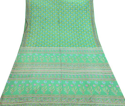 Indian Vintage Sari Green 100% Pure Silk Printed Sarees 5yd Craft Fabric Sewing Soft Dress Making Floral Quilting Crafting Upcycle