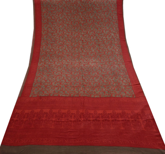 Indian Vintage Sari Red & brown Pure Crepe Silk Printed Saree 6yard Sewing Geometric Craft Fabric Wrap Dress Making Crafting Quilting