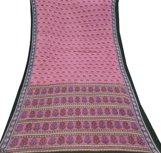 Indian Vintage Pink Pure Silk Printed Saree 5 Yards Soft Floral Fabric for Dressmaking, Quilting, Crafting, Sewing & Upcycling