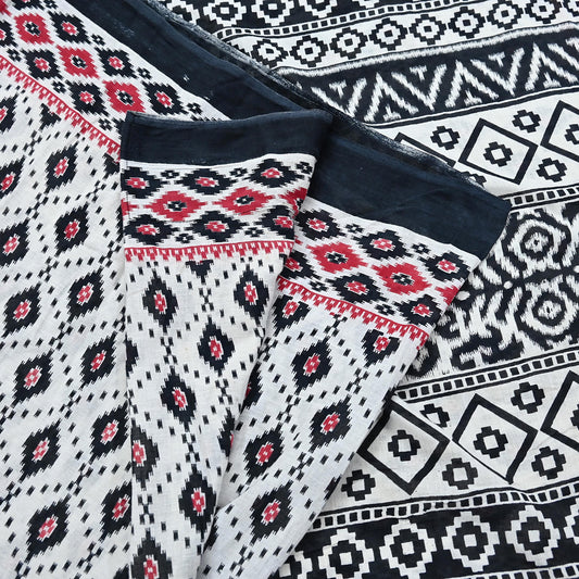 Indian Vintage White & Black Printed Pure Cotton Saree | 5 Yards | Soft Fabric for Sewing, Crafting, Quilting, Upcycling, Dressmaking, Boho