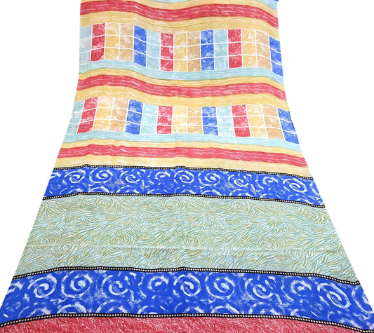 Indian Vintage Sari Multi Pure Crepe Silk Printed Saree 5yard Sewing Geometric Craft Fabric Wrap Dress Making Crafting Quilting