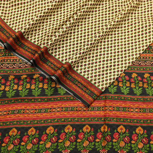 Indian Vintage Multi Blend cotton Printed Saree 5Yards Soft Floral Fabric for Dressmaking, Quilting, Crafting, Sewing, Dress Making