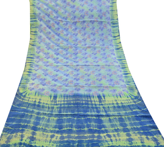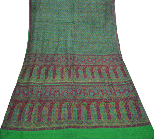 Indian Vintage Sari Green 100% Pure Silk Printed Saree Craft Fabric 6yd Sewing Dress Making Soft Wrap Quilting Crafting Upcycle