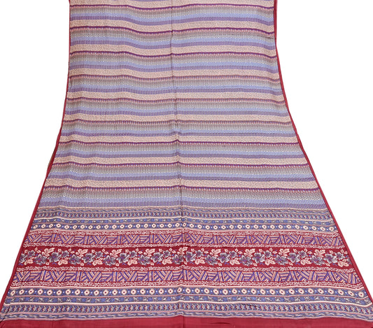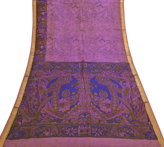 Vintage Purple & brown Pure Silk Saree Indian Printed Silk Fabric 6 Yards Boho Craft Material for Sewing, Quilting, Dressmaking, Upcycling