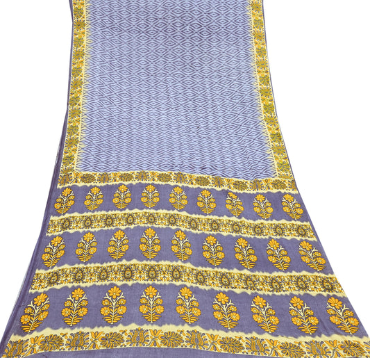 Indian Vintage Gray Saree Printed Pure Cotton Sari Craft Fabric 5Yd Soft Sewing Sarong Wrap Boho Floral Dress making Crafting