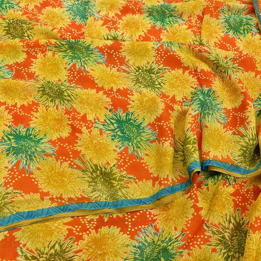 Indian Vintage Orange & Yellow Saree Pure Georgette Silk Printed Sari Craft Fabric Sewing 5Yard Soft Light Dress Making Floral
