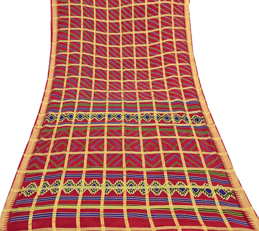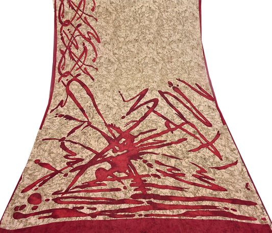 Indian Vintage Red & Beige Saree Printed 100% Pure Cotton Sari Craft Fabric 5Yd Soft Sewing Sarong Wrap Dress Making Quilting Crafting