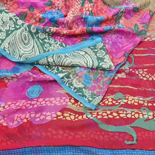 Women Vintage Sari Multi Pure Georgette Silk Printed Saree Craft Fabric Sewing 5Yard Soft Light Dress Making Floral