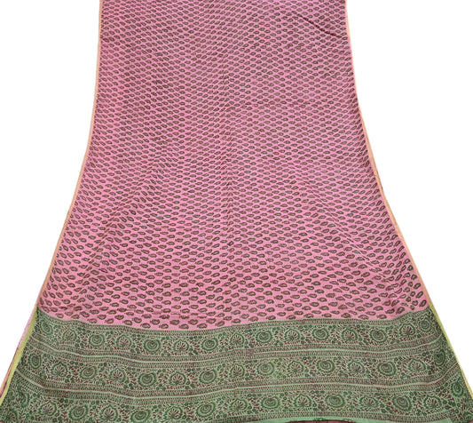 Indian Vintage Pink Pure Silk Printed Saree 6 Yards Soft Floral Fabric for Dressmaking, Quilting, Crafting, Sewing & Upcycling