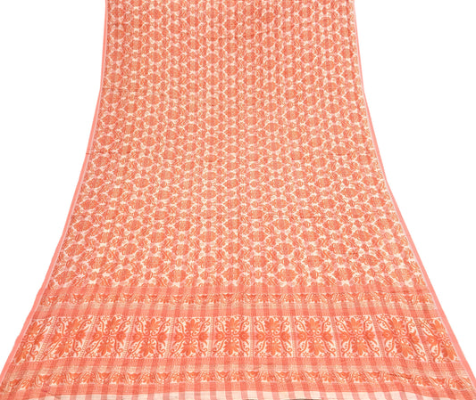 Indian Vintage Ivory & Orange Printed Pure Cotton Saree 5 Yards Soft Fabric for Sewing, Crafting, Quilting, Upcycling, Dressmaking, Boho