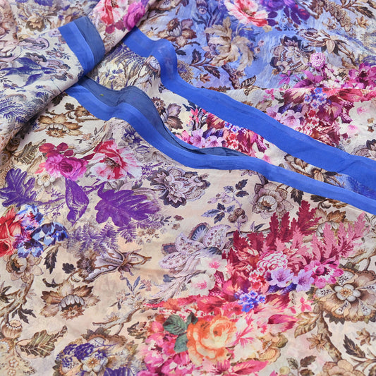 Indian Vintage Multi Pure Silk Printed Saree 5Yards Soft Floral Fabric for Dressmaking, Quilting, Crafting, Sewing, Dress Making