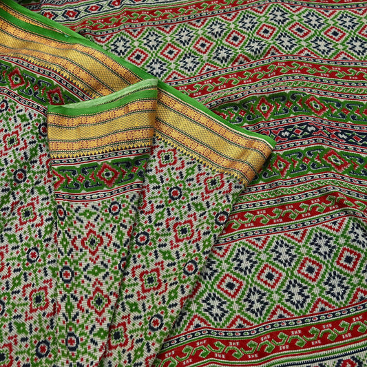 Indian Vintage Sari Green & Ivory Pure Crepe Silk Printed Saree 6yd Sewing Floral Soft Craft Fabric Wrap Dress making Crafting Quilting