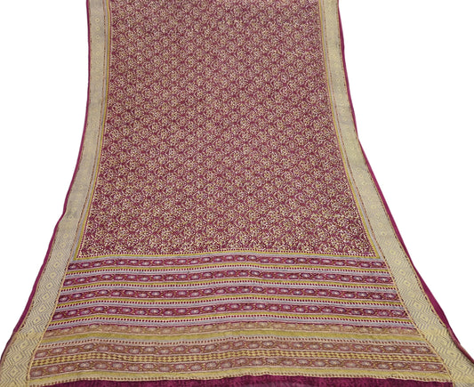 Indian Vintage Sari Magenta 100% Pure Silk Printed Saree Craft Fabric 5yd Sewing Dress Making Soft Wrap Quilting Crafting Upcycle