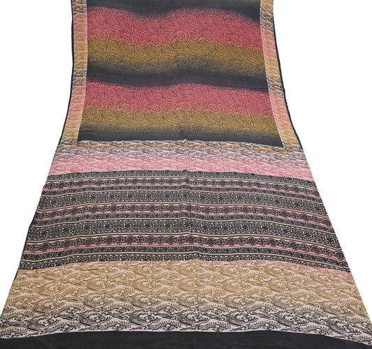Women Vintage Sari Gray & Beige Pure Georgette Silk Printed Saree Craft Fabric Sewing 5Yard Soft Light Dress Making Dress making Crafting