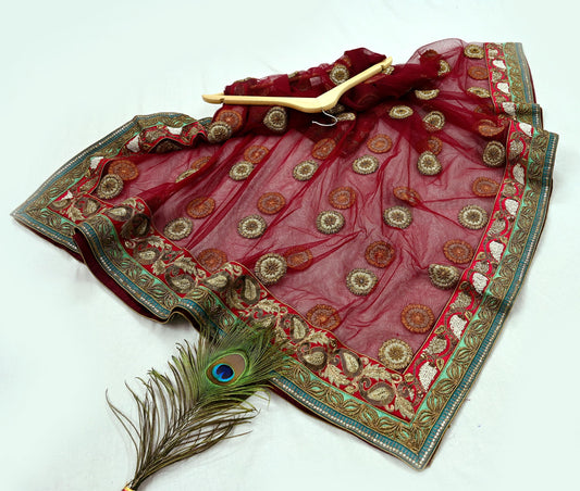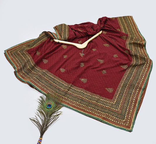 Indian Vintage Heavy Wedding Maroon Net/Mesh/Velvet Hand Embroidered Dupatta Designer By Anamika Khanna Bridal Wear Dabka Zardozi Veil Hijab