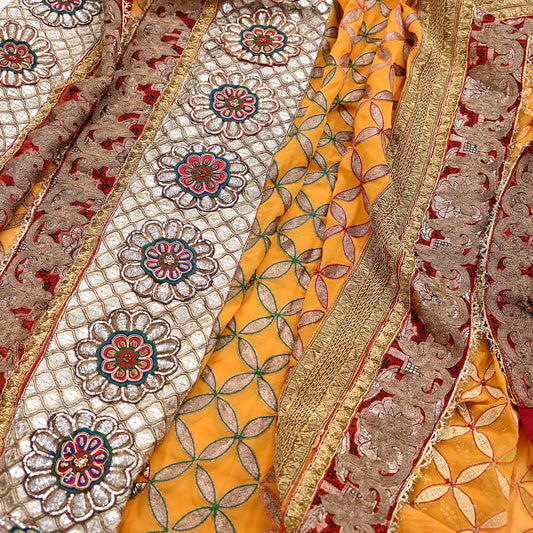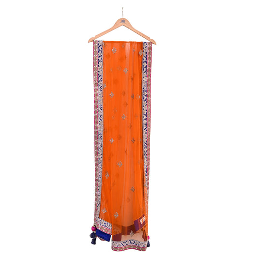 Indian Pre-Owned Heavy Hand Embroidered By Designer Anamika Khanna Dupatta Saffron Pure Georgette Silk Wedding/Party