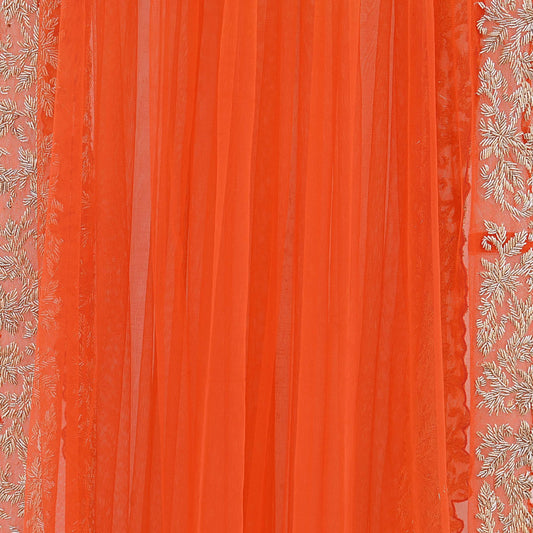 Orange Net Hand Embroidered Dupatta by Anamika Khanna Bridal Zardozi Stole Indian Wedding Veil Designer Couture Scarf
