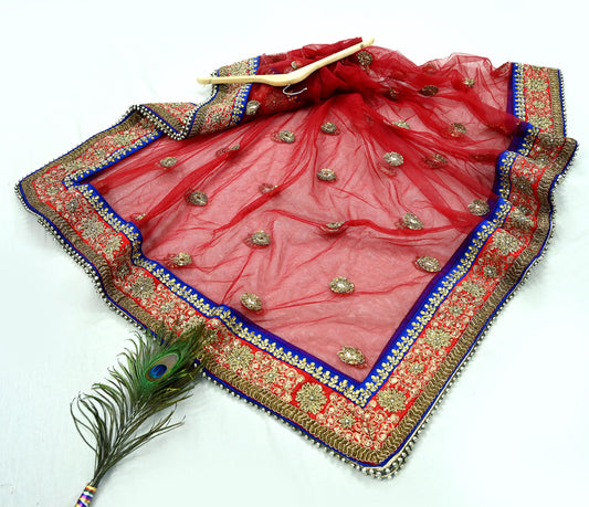 Indian Vintage Heavy Wedding Red Net/Mesh/ Velvet Hand Embroidered Dupatta Designer By Manish Malhotra Bridal Wear Zardozi Veil Hijab