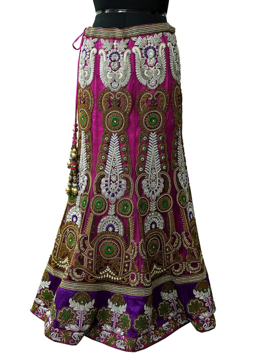 Indian Vintage Heavy Purple Pure Chanderi Silk Hand Embroidered Brocade Lehenga Skirt By Designer Sabyasachi Bridal Wear Dabka/ Zardozi