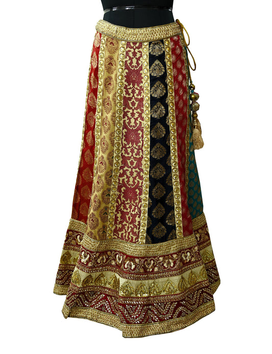 Indian Vintage Heavy Multi Pure Silk Hand Embroidered Brocade Lehenga Skirt By Designer Sabyasachi Bridal Wear Dabka/ Zardozi