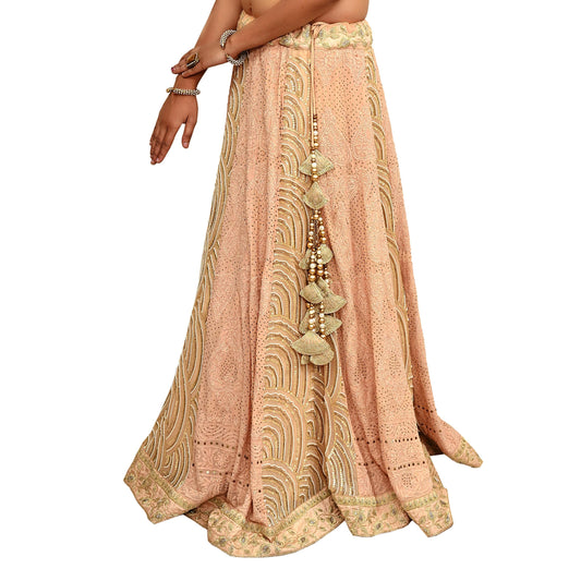 Indian Pre-owned Heavy Hand Embroidered Chikankari/Mukesh Lehenga/Skirt By Designer Abu Jani Pure Georgette Silk
