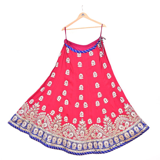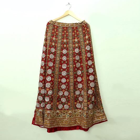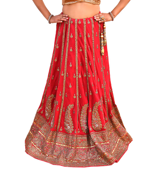 Indian Vintage Heavy Red Pure chanderi Silk Hand Embroidered Lehenga Skirt By Designer Sabyasachi Bridal Wear Dabka/ Zardozi